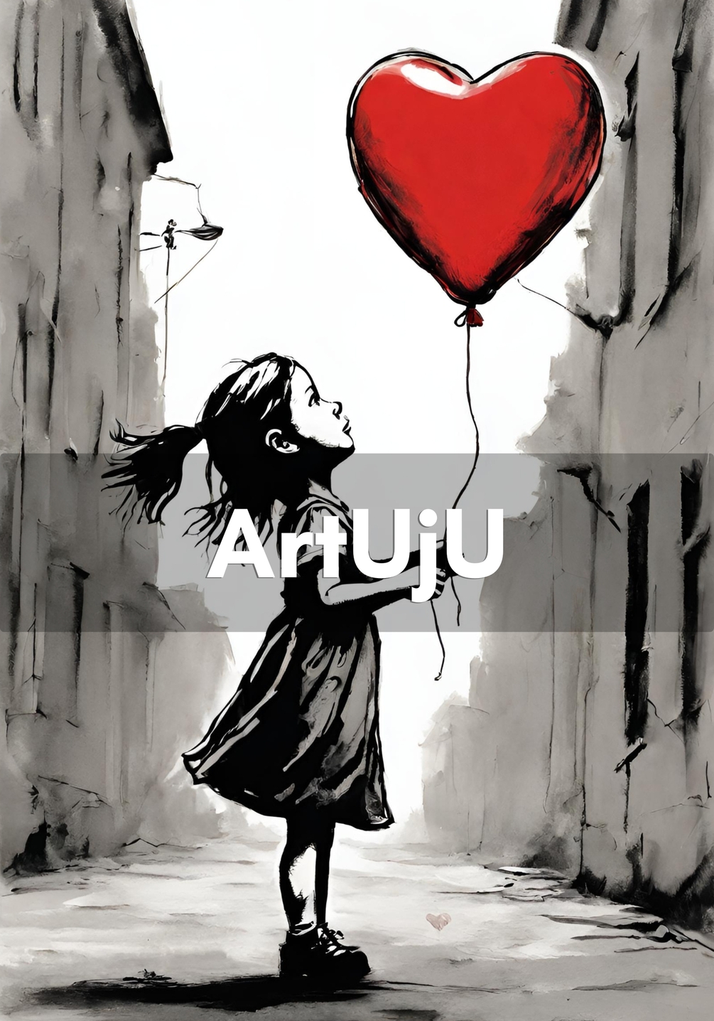 Looking for art that inspires your little rebel? This captivating digital download reimagines Banksy's iconic Balloon Girl, holding onto a heart balloon that soars high above the urban landscape.